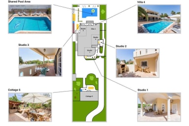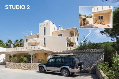 Wir vermieten auch 1 Cottage, 2 kleinere Studios und eine Villa mit vier Schlafzimmern auf dieser Quinta. Den Garten und den Pool teilen wir uns gemeinsam. Aber jede Einheit hat ihren eigenen privaten Bereich.