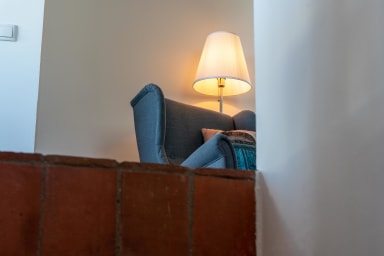 Poltronas confortáveis, boa iluminação por toda a casa. As escadas de acesso à cozinha são difíceis por serem estreitas e terem degraus bastante altos, mesmo com corrimões. Ainda bem que tem outro WC nesse piso! Gostámos muito! Recomendamos e ponderamos voltar.