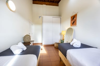In dieser Villa in Vale da Telha vereinen sich rustikaler Charme und moderner Luxus, nur wenige Minuten vom Ozean entfernt. Diese einzigartige Villa bietet eine Kombination aus zeitloser Eleganz und modernem Komfort und ist der perfekte Rückzugsort für Familien oder Gruppen von bis zu sechs Personen.