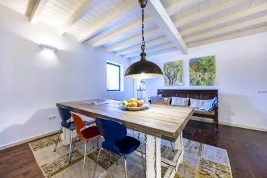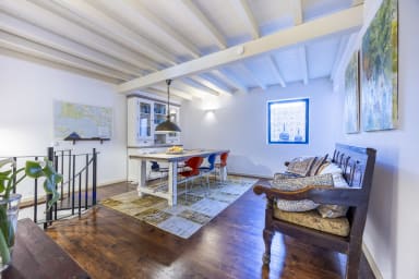 Die voll ausgestattete Hauptküche ist perfekt für alle, die gerne kochen, und bietet einen gemütlichen Essbereich, in dem Sie lange Abendessen bei Kerzenschein in privater Atmosphäre genießen können. Zusätzlich gibt es im Erdgeschoss eine kleine, weitere Küche, die während Ihres Aufenthalts zusätzliche Flexibilität bietet. Im Obergeschoss lädt der wohnliche Wohnbereich mit einer sorgfältig ausgewählten Büchersammlung zu entspannten Momenten ein – ein echtes Paradies für Bücherliebhaber.