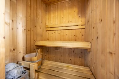 Das Haus verfügt über zwei liebevoll eingerichtete Schlafzimmer, jeweils mit einem Queensize-Bett, sodass Sie komfortabel schlafen und von vintage-inspirierter Gemütlichkeit umgeben sind. Insgesamt stehen Ihnen drei Badezimmer zur Verfügung, die klassischen Stil mit modernem Komfort verbinden. Eines der Badezimmer im Obergeschoss ist mit einer privaten Sauna ausgestattet – ideal zum Entspannen nach einem Tag voller Erkundungen durch die gepflasterten Straßen von Lagos.