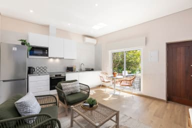 Gemütliches Studio-Apartment im Erdgeschoss mit einem semi-getrennten Schlafbereich, einer voll ausgestatteten Küche und einem modernen Badezimmer. Genieße deine private Ecke auf der Terrasse—perfekt für einen Morgenkaffee oder ein Getränk zum Sonnenuntergang im Algarve-Breeze.
