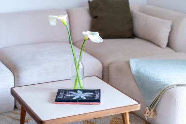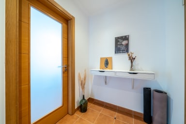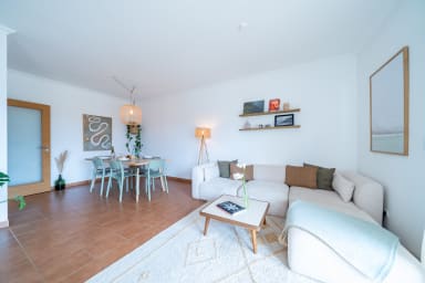 This charming 2-bedroom apartment in Espartal offers a cozy and stylish stay for up to 4 guests. Located on the first floor, the apartment features a spacious living area with modern decor, creating a warm and welcoming atmosphere. The living room is bright and airy, complemented by large windows leading to one of the balconies, where you can enjoy the stunning views and morning sun.