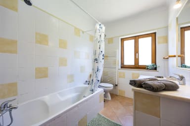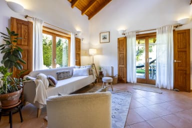 The house itself is spacious and welcoming, designed for relaxed days and easy living. As you step inside, you enter a large living area that invites you to slow down, read a book, share meals, and enjoy time together without distractions. There is no television, encouraging a true break from daily routines. The house has excellent insulation, which keeps it naturally cool during the summer months, so air conditioning is not needed.