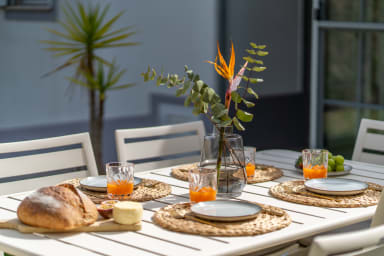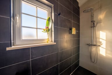 Step outside to find a private garden at the back, where you can enjoy the morning sun in peace. There's a table with chairs on the terrace, perfect for a quiet breakfast or reading. In the afternoon, the front terrace offers a sunny spot to unwind, making it a great place to relax with a drink.