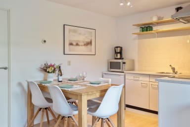 Je hebt een volledig uitgeruste, moderne keuken tot jullie beschikking waar je ontbijt, lunch en zelfs een uitgebreid diner kunt bereiden. Geen zorgen over de afwas, daar hebben we een vaatwasser voor. Daarnaast vind je ook een 4-pits inductiekookplaat, combi-magnetron, koelkast met vriezer, Nespresso machine, waterkoker en andere handige apparaten in de keuken. De eerste kopjes koffie en vaatwasser blokjes krijg je van ons.