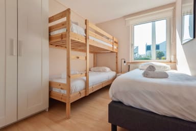 - Slaapkamer 2: 3 enkele 90x200 bedden (1 stapelbed + 1 regulier bed)