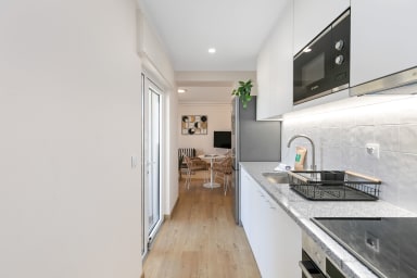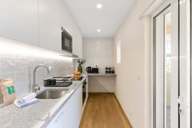 Zonnig studio-appartement met een comfortabel kingsize bed, praktische keuken en privé terras met uitzicht op het gedeelde patio. Ideaal voor een ontspannen verblijf nabij het beste van Lagos—winkels, restaurants en cafés op slechts een korte wandeling.